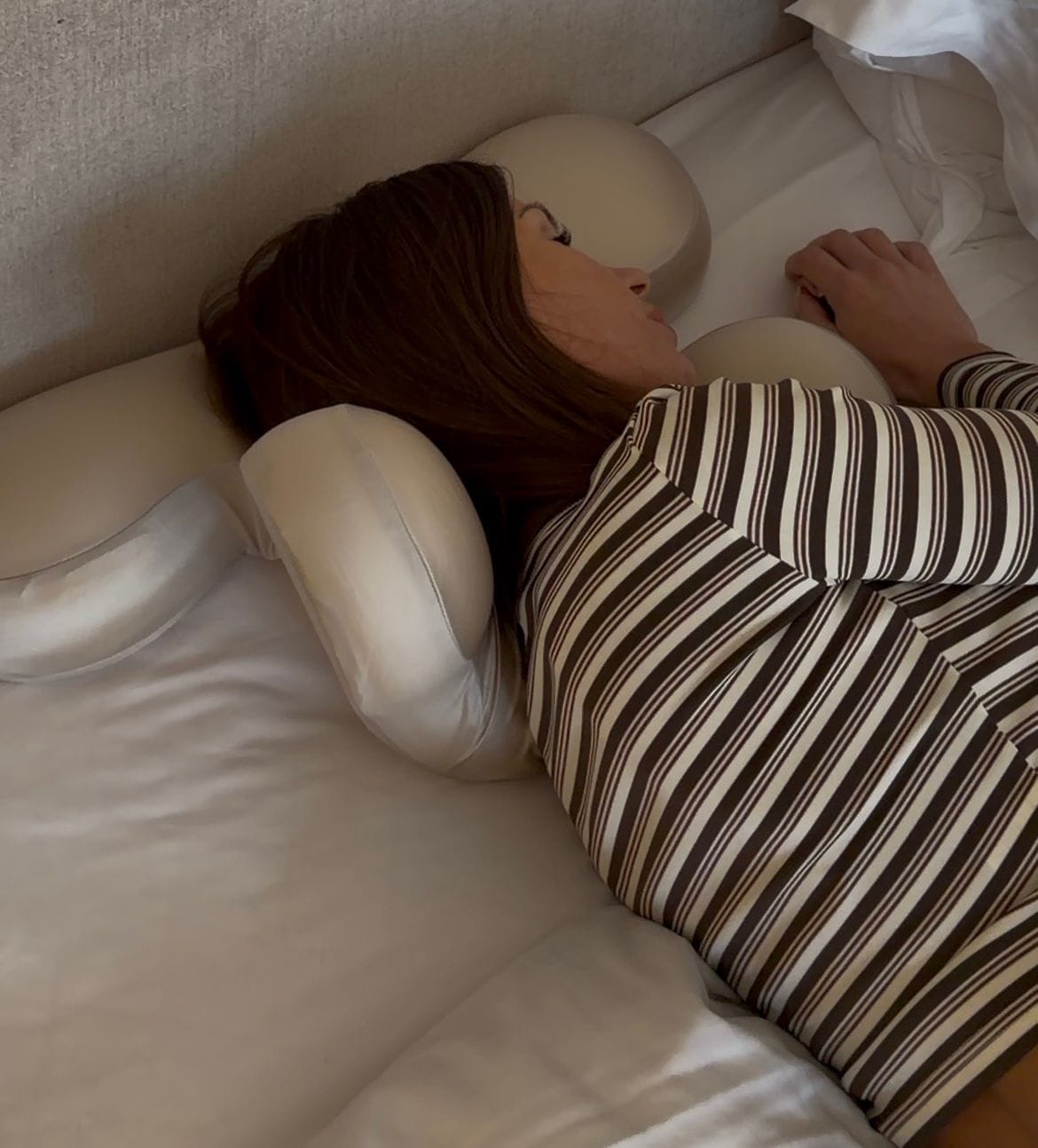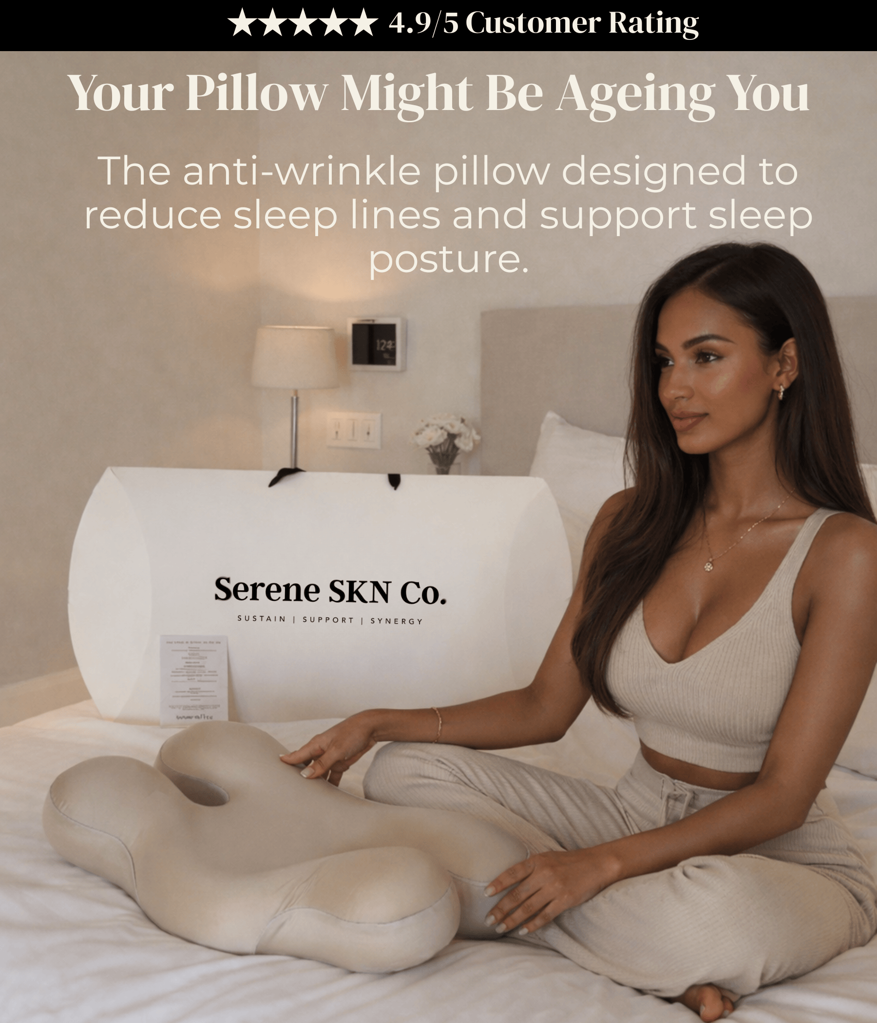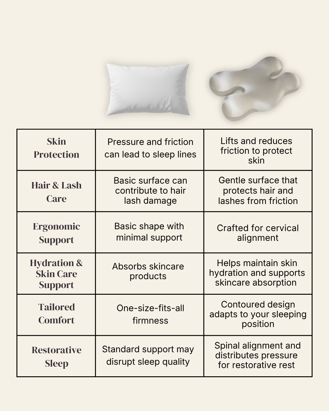 Our pillow is designed to lift, not press. Its unique ergonomic structure keeps pressure off your face, supports cervical alignment, and promotes restorative sleep helping you wake aligned, refreshed, and crease-free.
