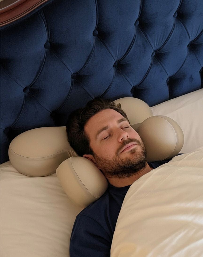 Our pillow is designed to lift, not press. Its unique ergonomic structure keeps pressure off your face, supports cervical alignment, and promotes restorative sleep helping you wake aligned, refreshed, and crease-free.
